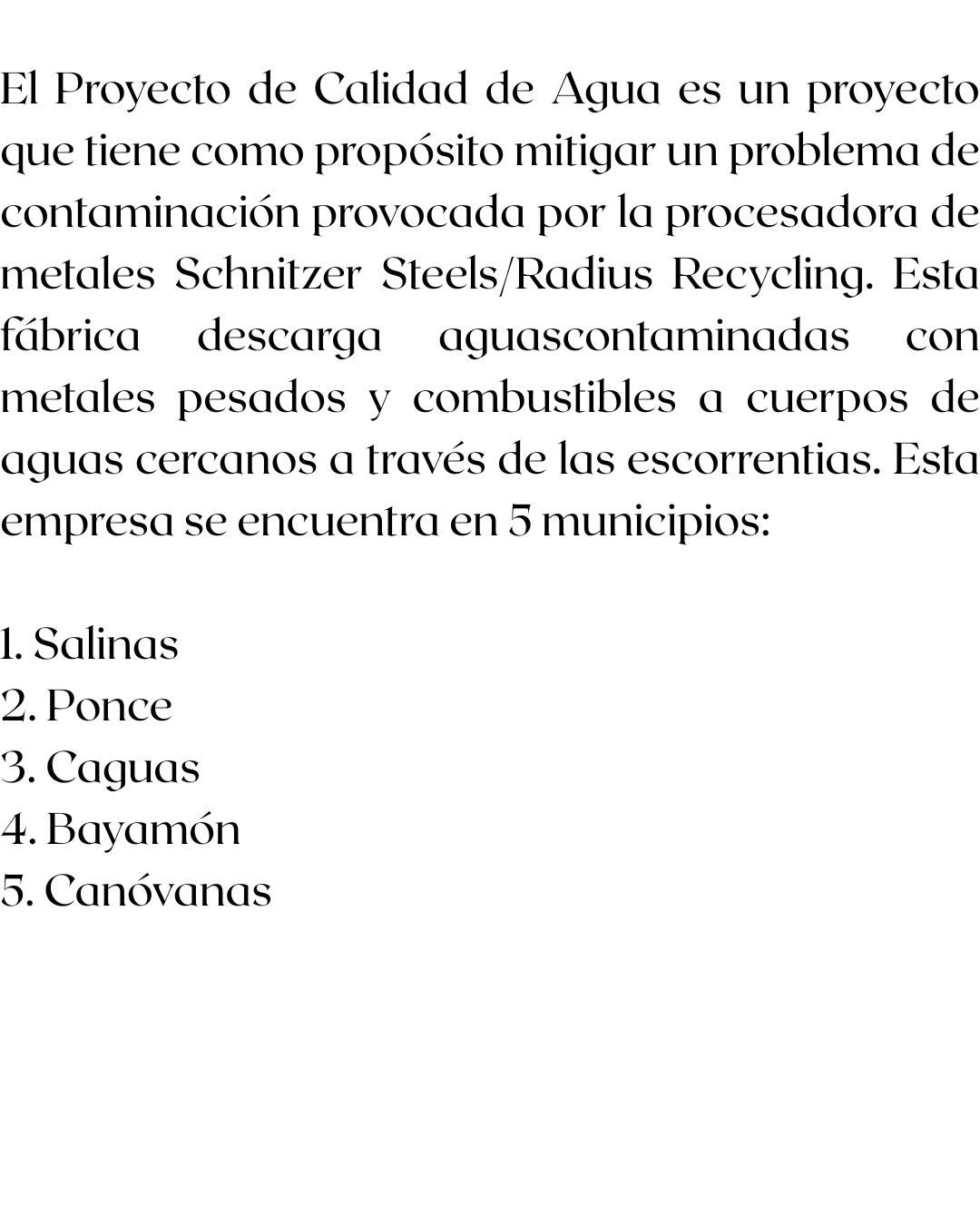 Presentación del Proyecto Calidad de Agua